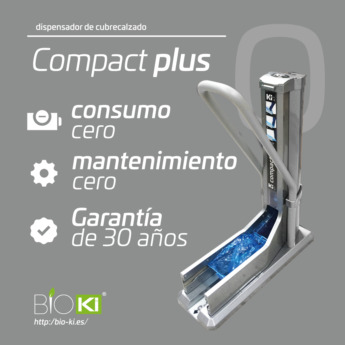 Por su sencillez de uso y alta seguridad en materia de higiene, Compact+ no solo puede ser utilizado en entornos que requieren un alto nivel de esterilización o con riesgo de contaminación, sino también simplemente en entornos en los que el uso normal del calzado pueda dañar o manchar el suelo. Compact+ no necesita ningún tipo de electricidad ni mantenimiento ordinario, ni extraordinario.
